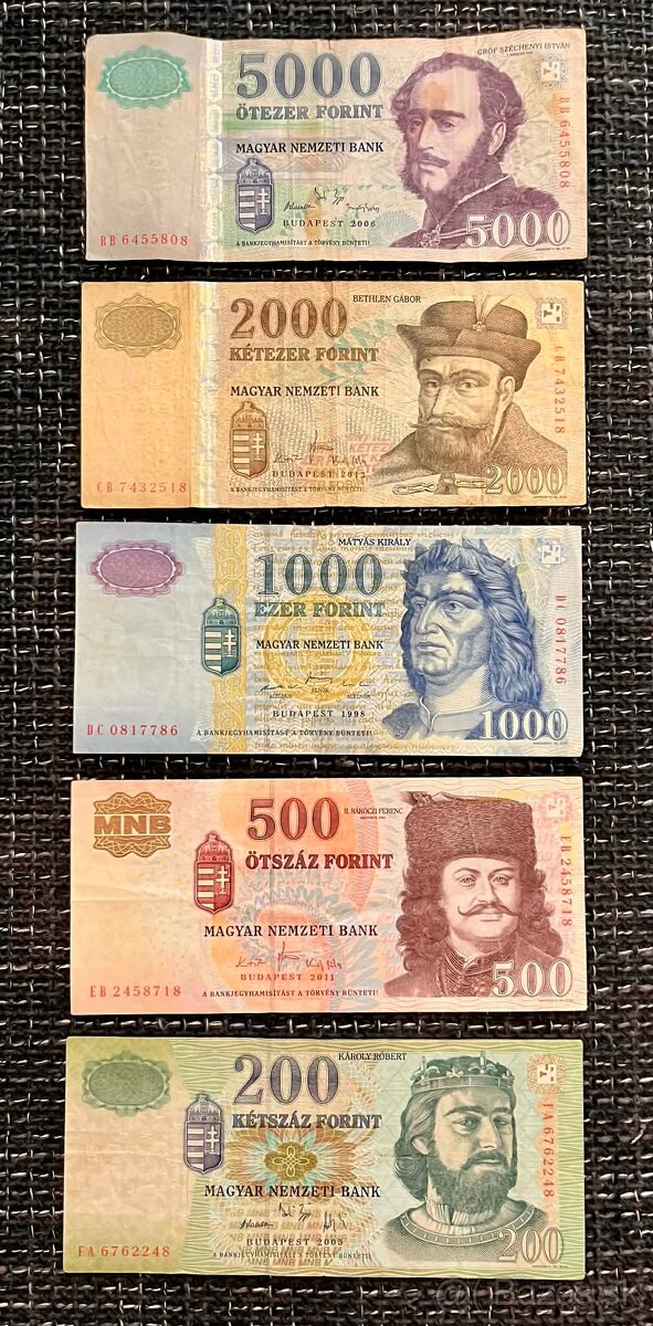 Predám bankovky forintt madarsko 5 ks.. Cena : 35 euro. Platba na účet , +pošta...v ponuke mám aj iné inzeráty..kliknite na moje meno