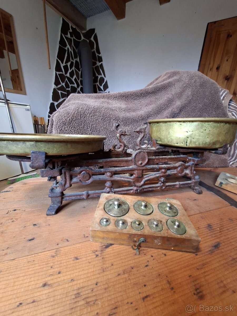 Dvojmisková liatinová vaha - [30.3. 2026]Predám starožitné liatinové váhy. Funkčné a zreštavrované. 1) 80€, 2) 90€.