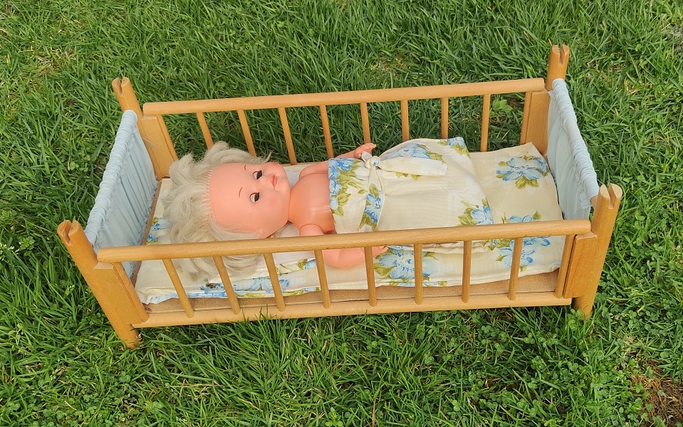 krásna retro postieľka s bábikou v bezchynom stave, rozmer na foto, cena bez pošty, preferujem prevod na účet,viac info rada poskytnem mailom,alebo na telefone , pozrite si aj ďalšie moje inzeráty a ušetrite na poštovnom, posielam aj packetou