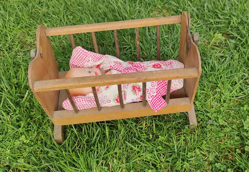krásna mini retro kolíska s bábikou, veľmi pekný stav vzhľadom na vek, na foto máte rozmery, cena bez pošty, preferujem prevod na účet,viac info rada poskytnem mailom,alebo na telefone , pozrite si aj ďalšie moje inzeráty a ušetrite na poštovnom, posielam aj packetou