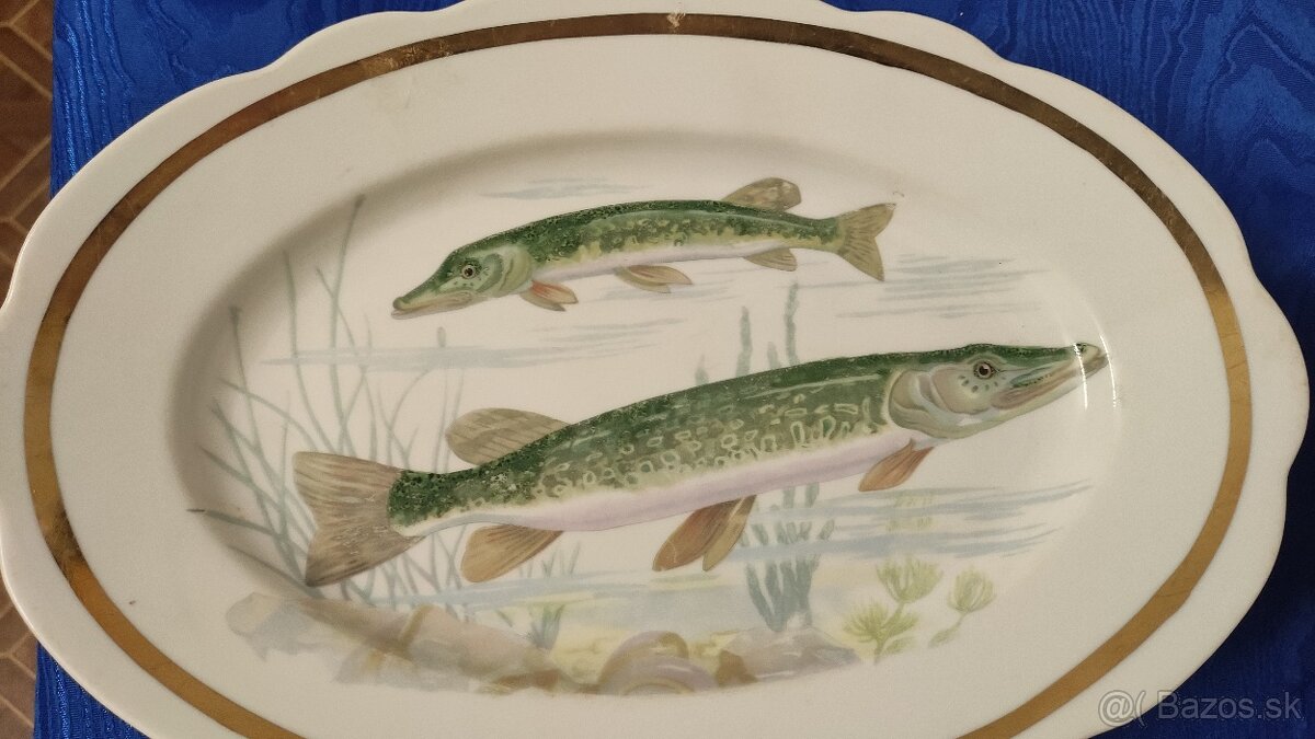Predám taniere, misky, porcelán Moritz Zdekauer Czechoslovakia, s motívom ryby 6ks, cena 60€. Tanier veľký okrúhly a tanier veľký oválny, cena 10€/ks.