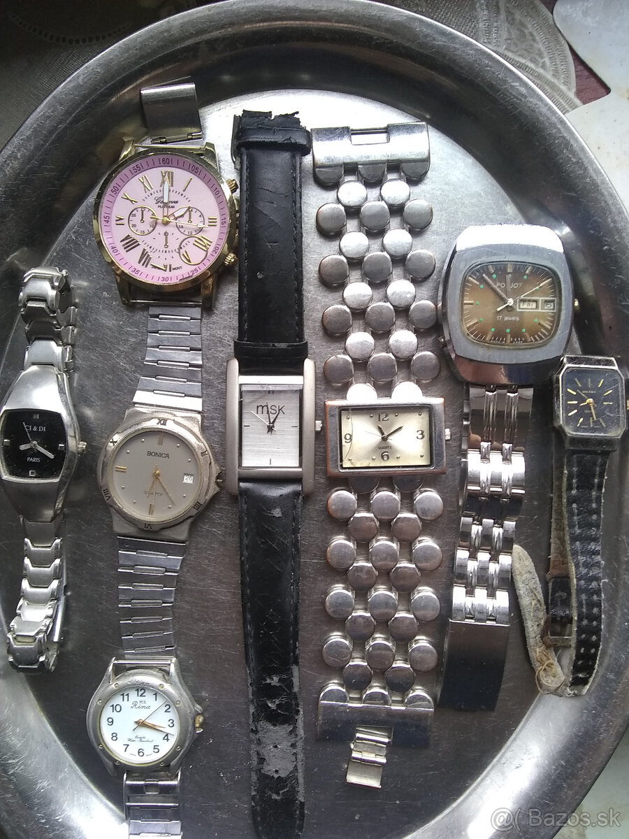 CI & DI, MZ RINA Japan, Gonova Platinum Japan, BONICA QUARTZ, MSK, POL JOT, QARTZ, MIKAWA Japan s pôvodnými remencami. Sú funkčné i nefunkčné /chýba batéria/.Predaj ako celok, nie jednotlivo.