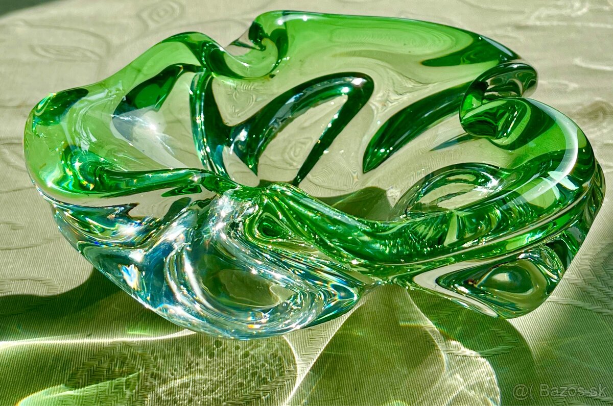 Hutné sklo - autorská misa zo 60tich rokov - [29.3. 2026]Veľká ( 33 cm ) dekoratívna misa predpokladám že z autorskej dielne Miloše Filipa z Chlumu