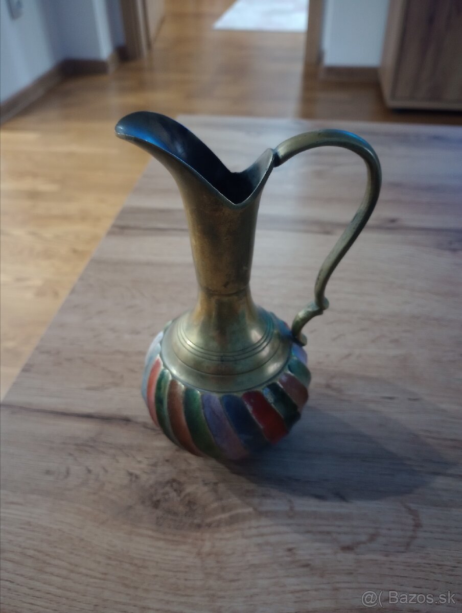Dekoračná kovová váza pozlatena - [25.3. 2026]Predám dekoračnu kovovú vázu pozlatenu z 80 rokoch.Váza je určená na interiérové dekorácie.Povrch vázy zdobí vyrezávaný vzor.Jej prepracovaný dizajn a farebná kombinácia z nej robí pútavú dekoráciu do rôznych interiérov.Rozmery: 40x12 cm.