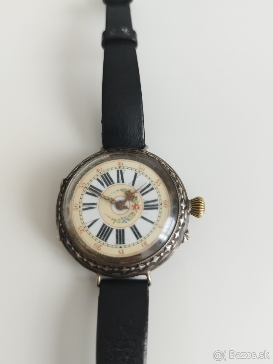 Maľovaný ciferník puzdro strieborné značene punc,strojček funkčný