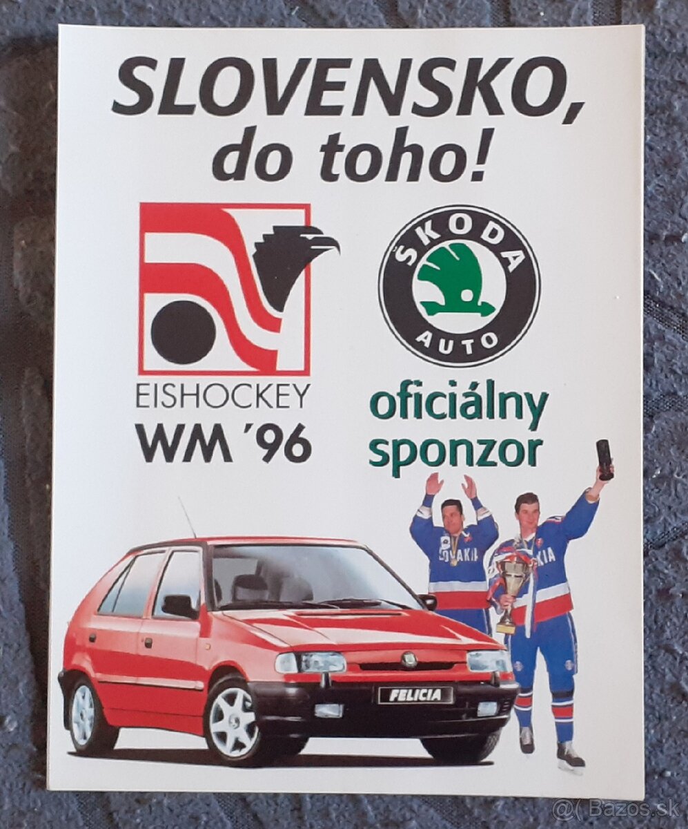Predám 2ks samolepiek Škoda hokejový sponzor 1996.