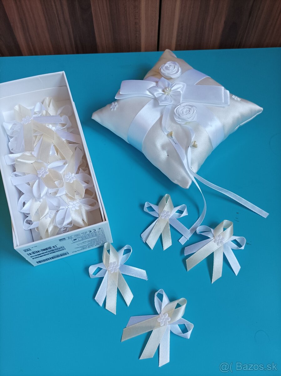 Posuniem zostatok svadobných pierok (bielo-krémové, 32ks), spolu s vankúšikom. Cena 7€+ poštovné.