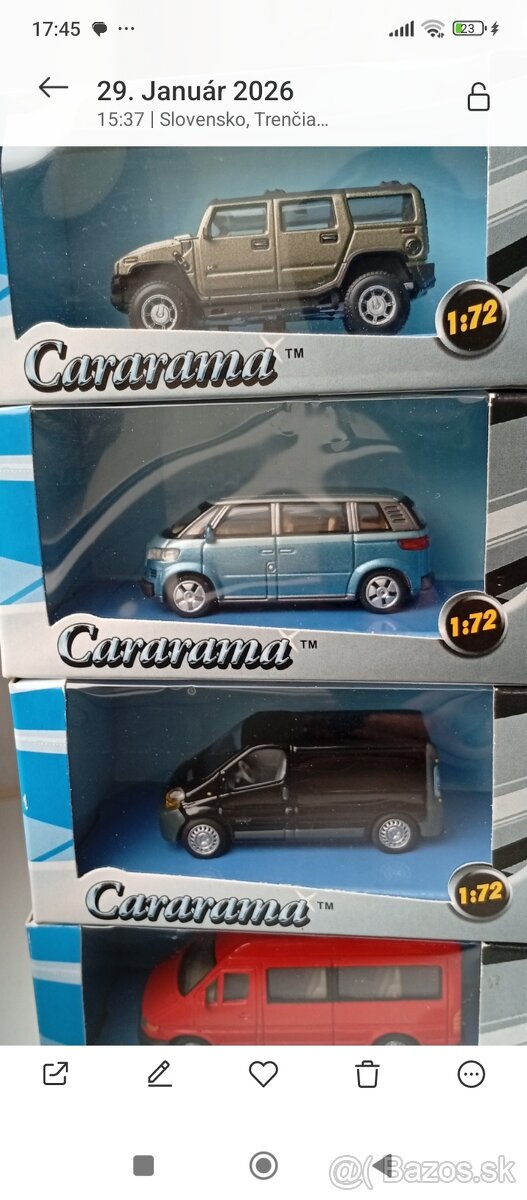 Predám tieto krásne 4ks modely CARARAMA 1:72 :HammerH2,Wolksvagen microbus2001 Renault Trafic,MercedesSprinter.Modely aj krabičky v 100%stave cena za 1 ks 7€.