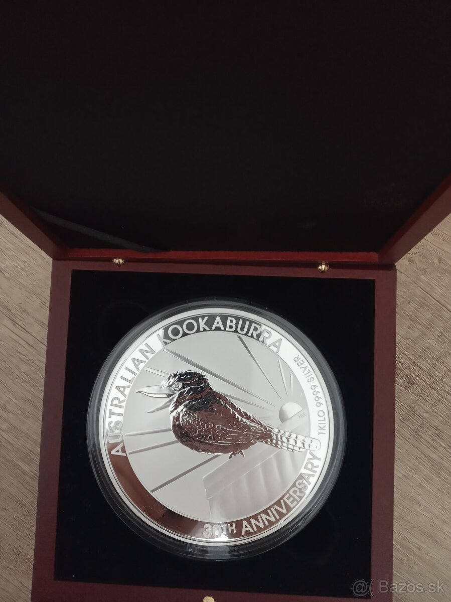 Predám krásnu striebornú investičnú mincu Australian Kookaburra 1 Kg 30th Anniversary r.2020