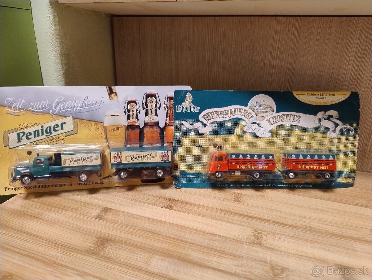 - nové modely pivných kamiónov, cena 5,- eur za kus, modely autíčok 4,- eur za kus