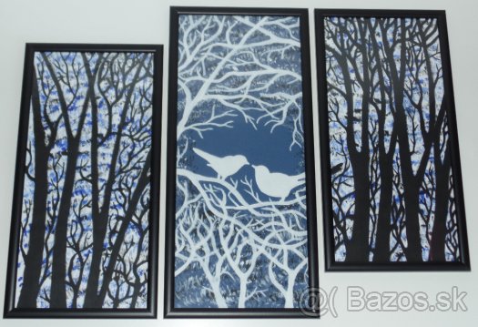 Zarámovaný obraz 3-dielny - "Vtáčiky na stromoch"