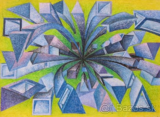 Nápaditá geometrická perspektíva kreslená pastelom gioconda na výkrese A2.