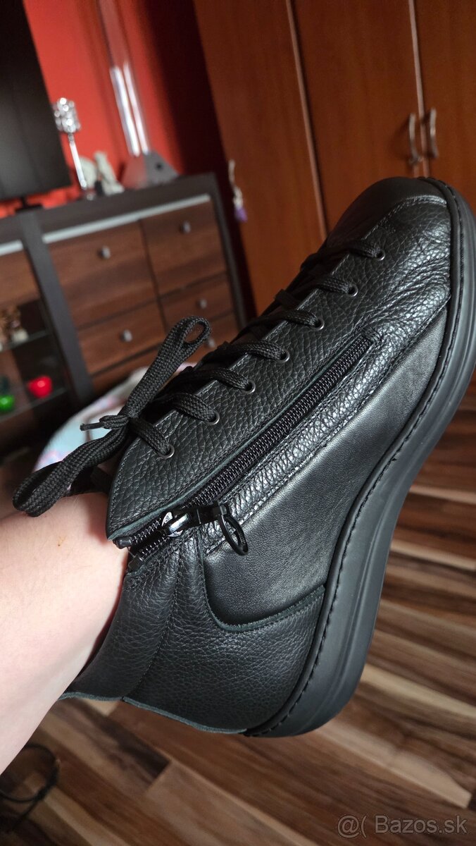 Nove kozene topanky veľkosť 43 aj sedia maju super ortopedicku vlozku vo vnutri po boku su zipsy daju sa regulovat...na opuchnute nohy made in ilaty