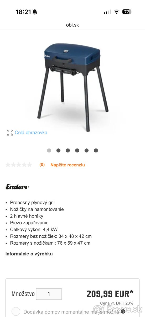 Predám plynový grill Enders .. ani raz nebol použitý . Potrebujeme väčší .. nový stojí 210€ .. dám za 100€