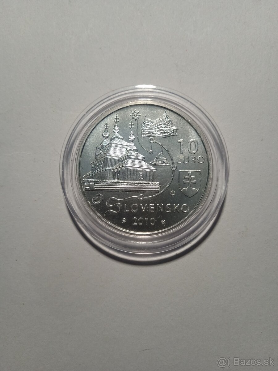 Predám pamätnú striebornú slovenskú mincu 10 EUR - Drevené chrámy 2010 BK. Cena je 55 EUR + poštovné.