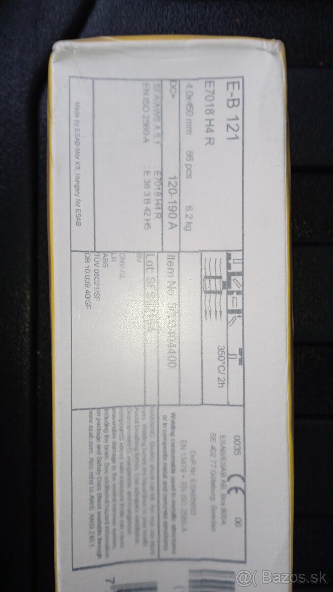 Predám bazicke elektródy E-B 121, priemer 4,0x450 mm. V balení je 56 ks, 6,2kg. Mám 1 balenie.