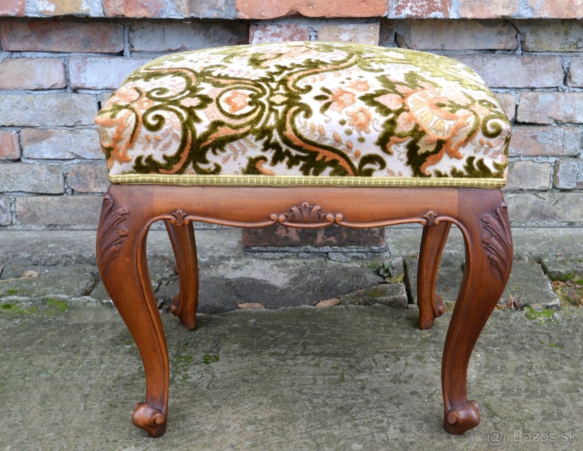 Pekná vyrezávaná taburetka z orechového dreva. V dobrom pôvodnom stave