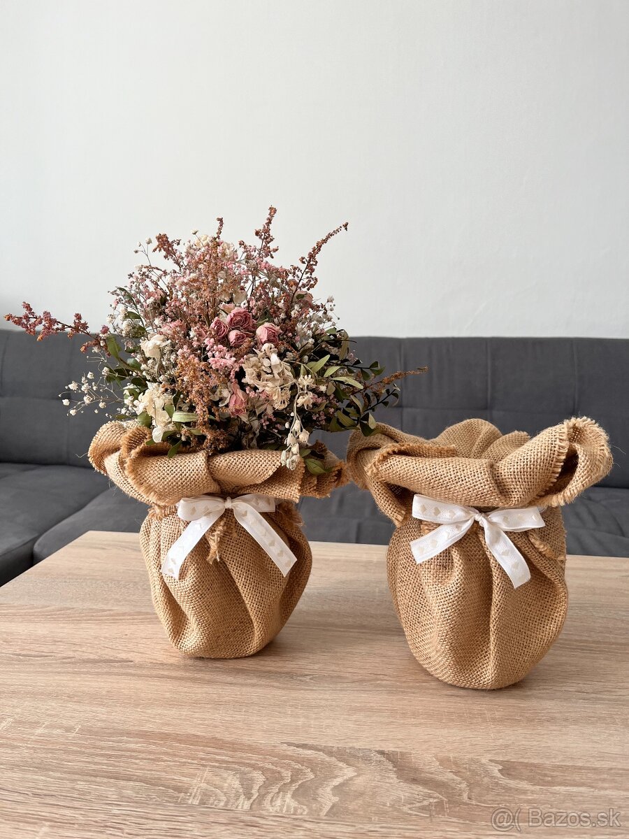 - (12 ks) ručne vyrobené vázičky (0,7 l zaváraninová fľaša obalená v jute) - 3€/kus