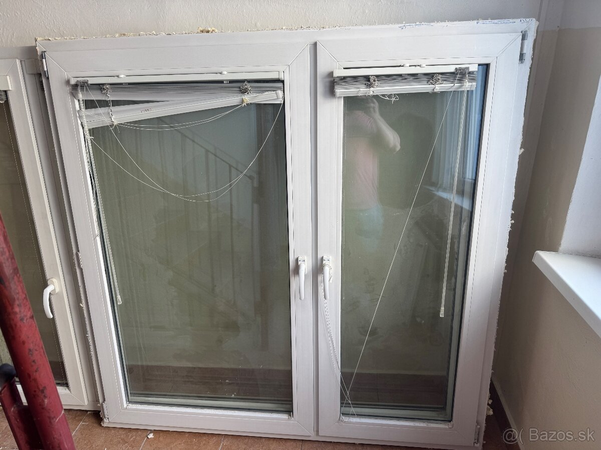 Predám používané plastové okna so sietkami 3x dvojkrídlové okno 158x158 a balkónové súpravu rozmer dĺžka 320cm dvere 87x235 a okno 236x155