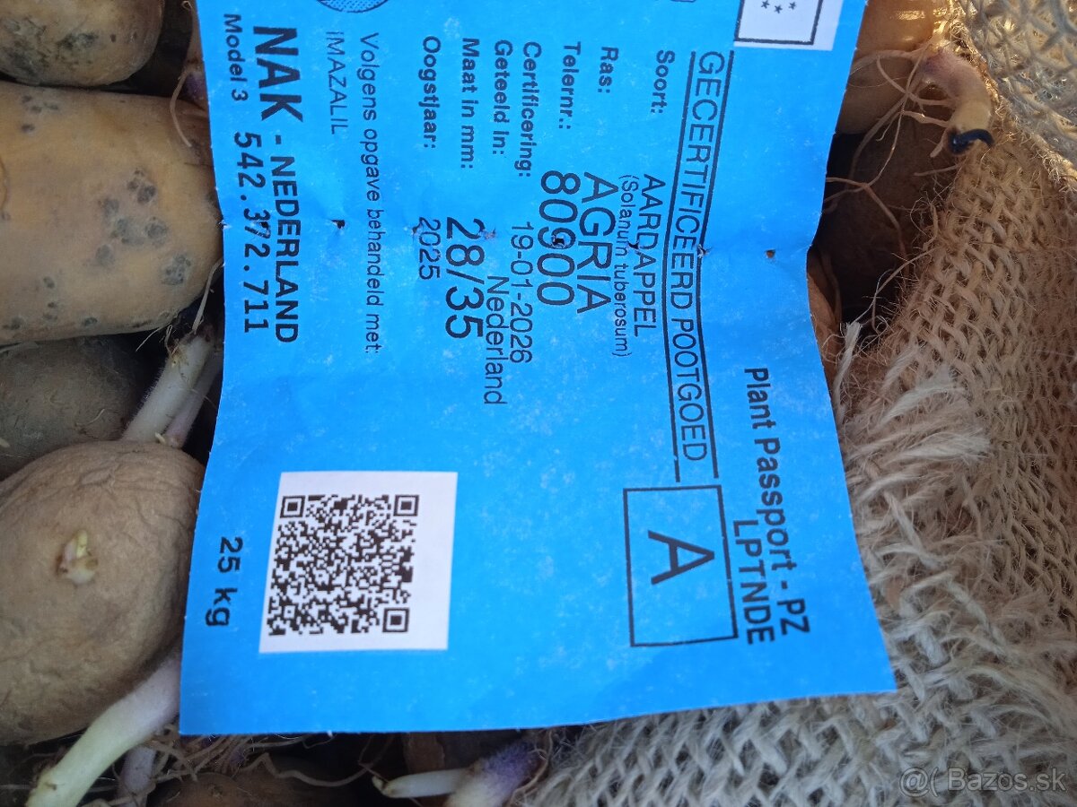 Predám originál holandské sadbové zemiaky odroda agria, cena 1,50 za kg.