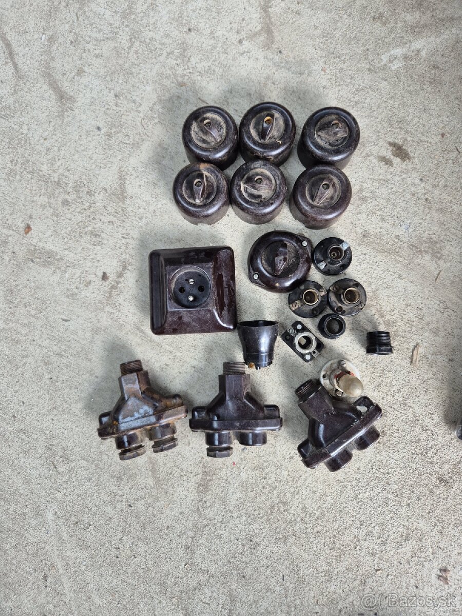 Ponúkam vyobrazené vypínače, rozbočnice na káble, objímky na žiarovky. Cena za všetko vrátane dobierky