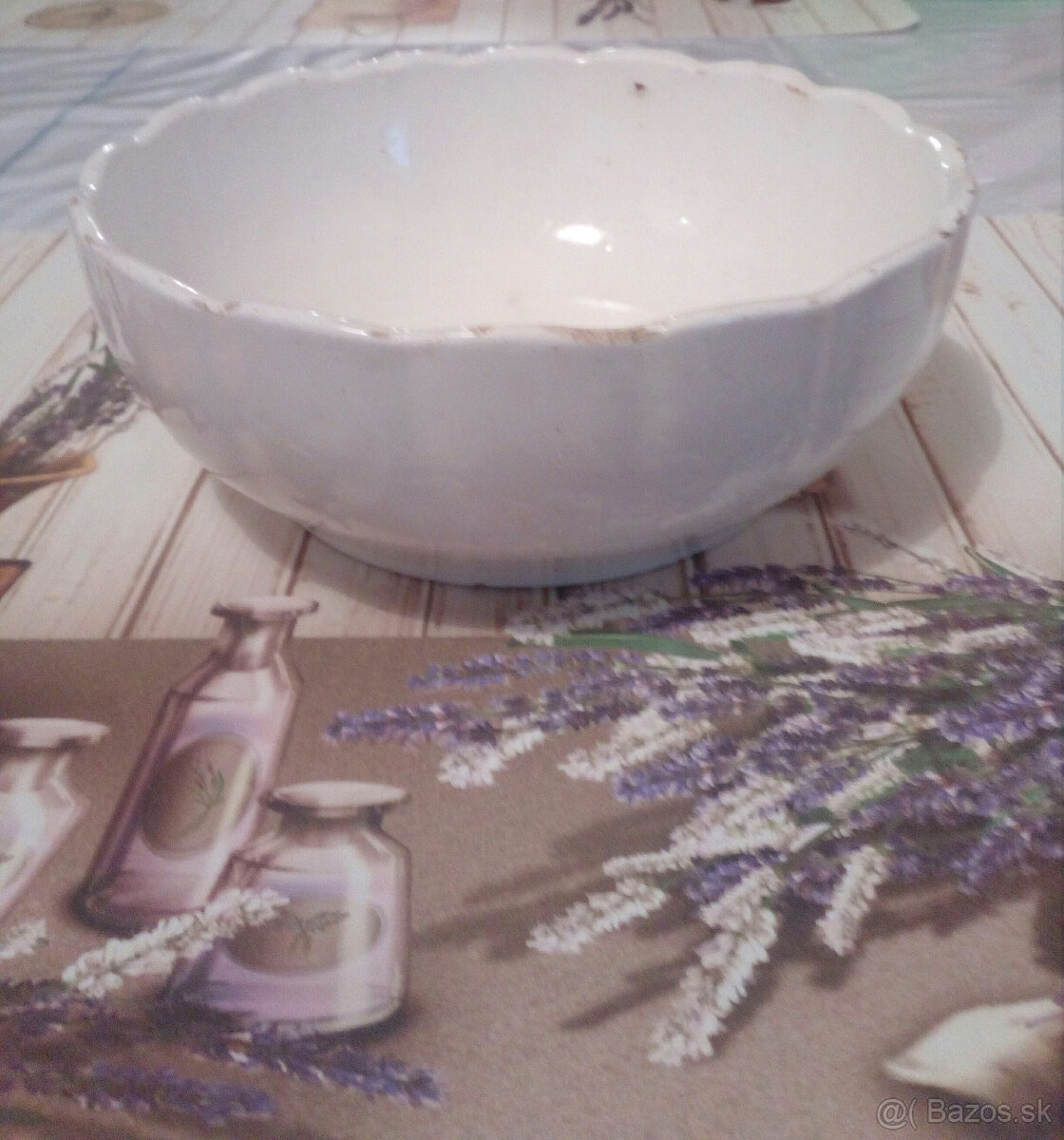 Mám na predaj starožitnú hlinenú lesklú misku za 3€ a podnos porcelánový na chlebíčky,koláče.. trošku puknutý,no dá sa používať cena 1€. Inzerát je aktuálny do zmazania.