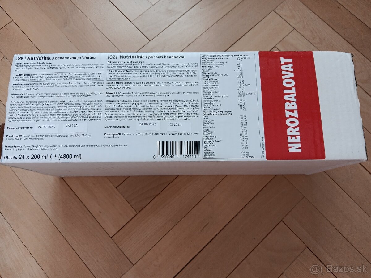 Predám nutridrink s banánovou príchuťou balenie 24x200 ml. Máme zásobu a nestíhame to využiť, minimálnu trvanlivosť má do 24.6.2026.