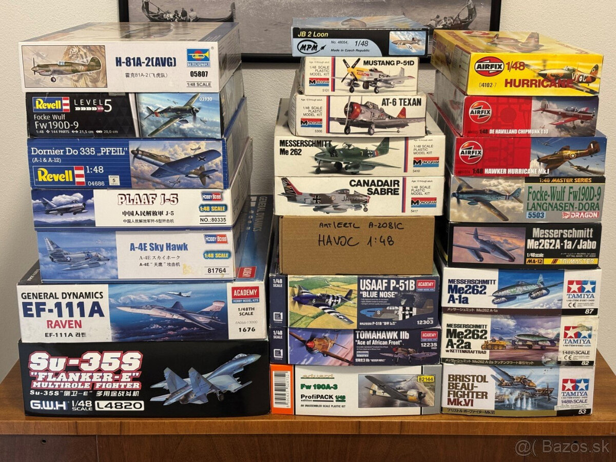 Predám stavebnice plastikových modelov lietadiel v mierke 1:48.