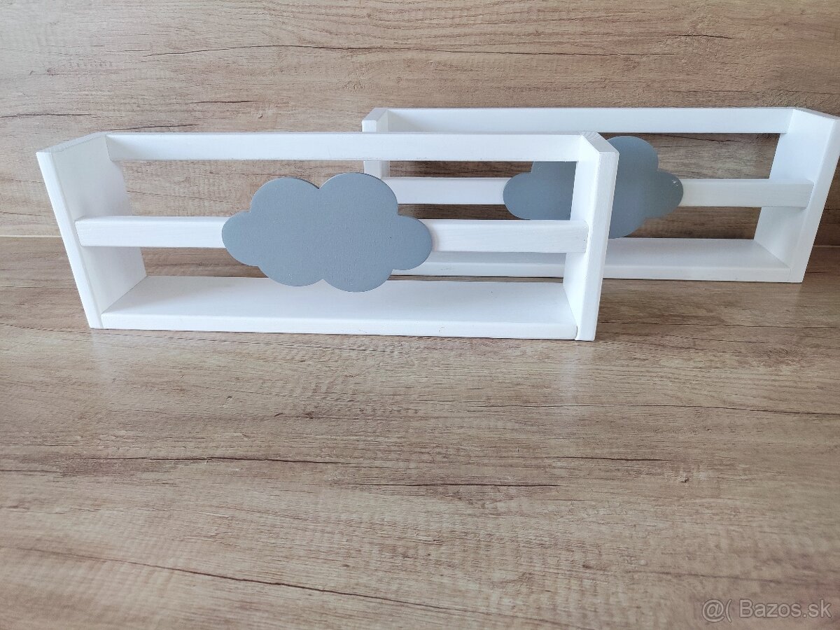 Poličky sú vo výbornom stave ale na jednom obláčiku je kúsok bielej farby, viď foto