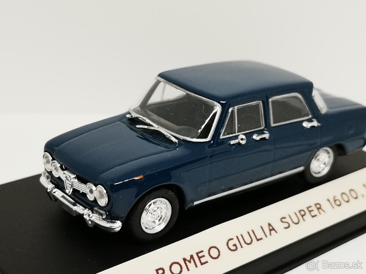 Predám kovový zberateľský model autíčka Alfa Romeo Giulia Super 1600, 1977, 1:43, model je celý čas v bezprašnej vitríne .Len volať alebo mail.