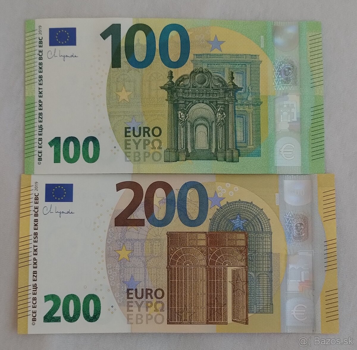 Predám set dvoch euro bankoviek najvyššej hodnoty druhej série "Európa" v bankovej kvalite N/UNC (nikdy neboli v obehu). Obe sú s podpisom štvrtej prezidentky ECB Ch.Lagarde.