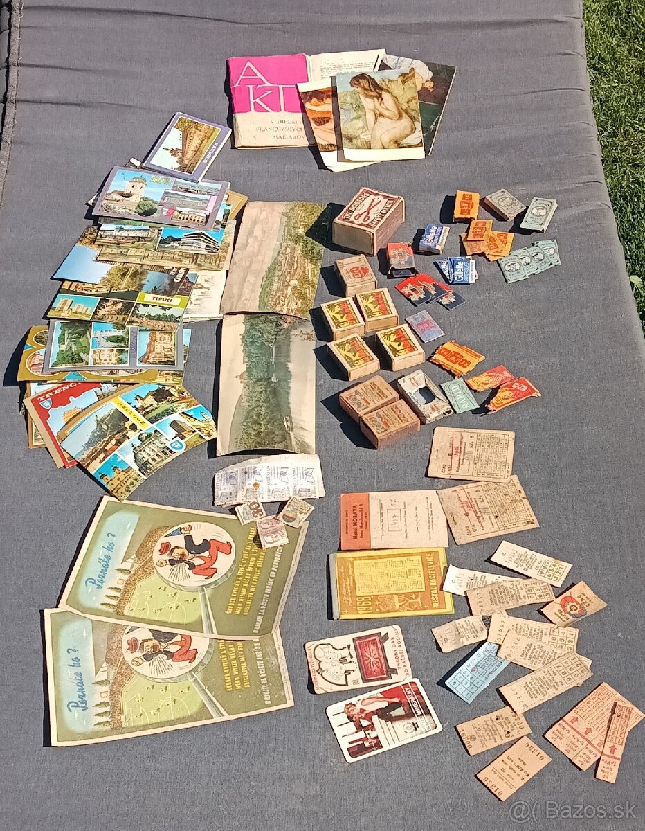 Predám tieto staré veci: zapalkove škatuľky, staré žiletky, pohľadnice miest, cestovné lístky... Cena za všetko spolu, najlepšie osobný odber.Na dobierku len po úhrade poštovného na účet.